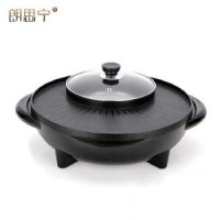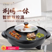朗思寧 韓國麥飯石日月鍋電燒烤爐家用無煙電烤盤烤肉涮烤火鍋