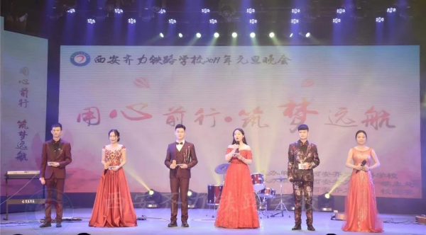 由校團委、學生處主辦,校辦、教務(wù)處、就業(yè)處、后勤處、公寓處協(xié)辦的“用心前行 筑夢遠航”西安齊力鐵路學校2019年元旦文藝晚會,與2018年12月20日在學生活動中心演出。